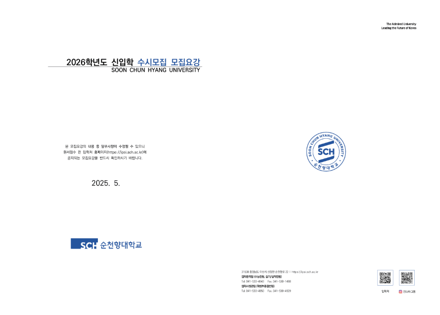 발표 방법: 본교 입학 홈페이지 공지(개별 통보 구간 제외). 일정은 변동될 수 있습니다.
